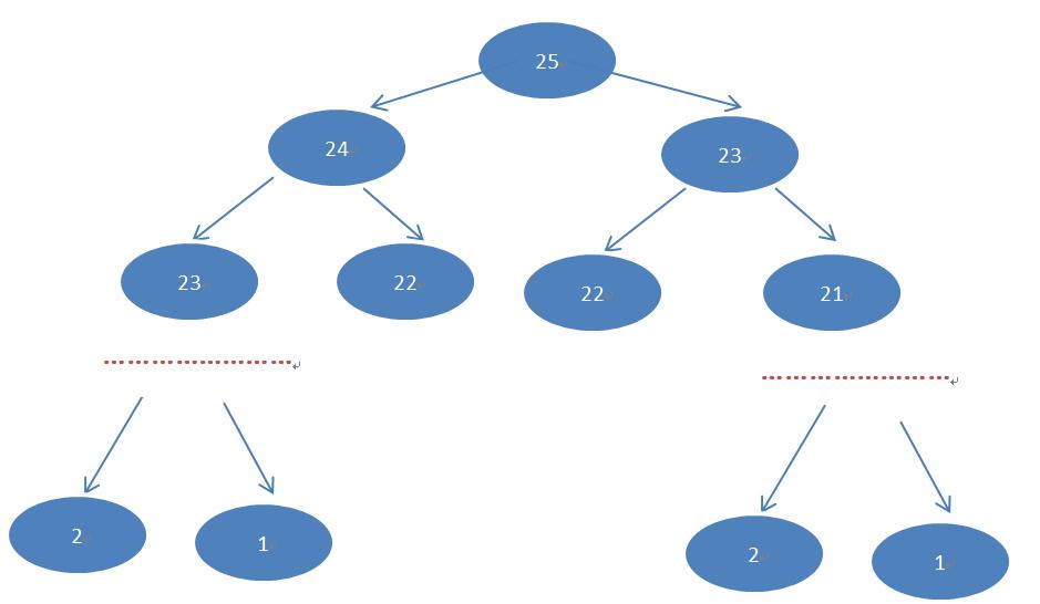 实例一:斐波那契数列 公式定义: f(n) = f(n-1) + f(n-2); n-2 >0; f(1)=1; f(2)=2; 使用Fork/Join框架实现多任务的并发执行计算,以n=25为例,数据结构分析: